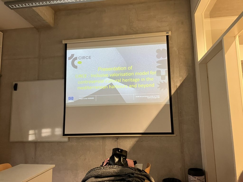 Radionica se održava u okviru predstavljanja europskog MARIE SKŁODOWSKA-CURIEkompetitivnog projekta Inclusive valorisation model or controversial cultural heritage in the Mediterranean Harbours and beyond (CIRCE) voditelja Giuseppea Capriottia sa Sveučilišta u Macerati.